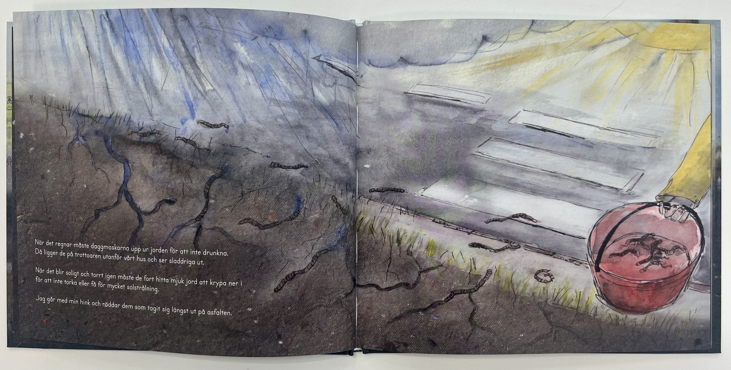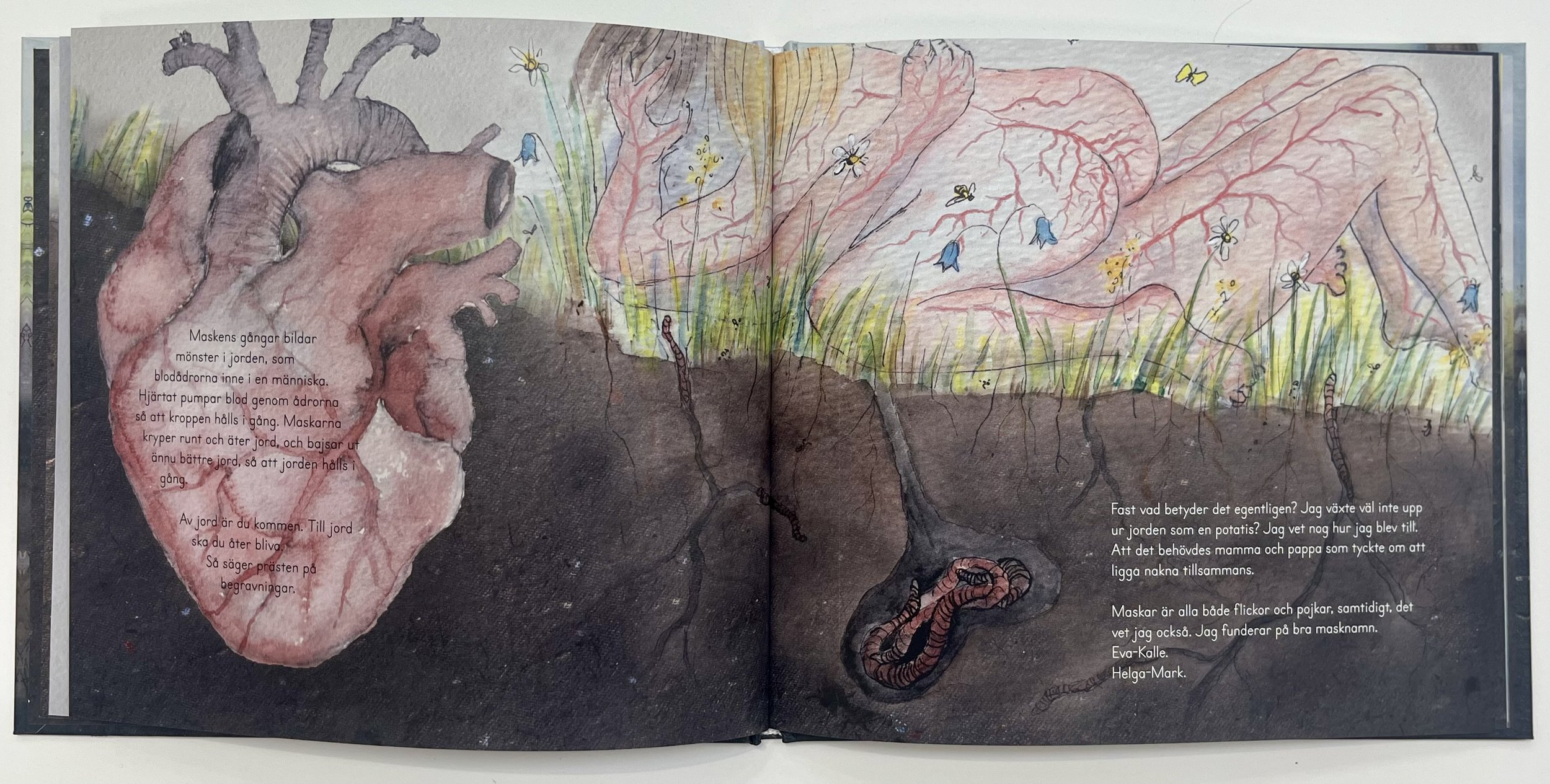 Här ligger jorden — ett requiem handlar om ett barn som studerar daggmaskar och indirekt bearbetar sin pappas död; ett lillgammalt barns funderingar kring livet och jorden.