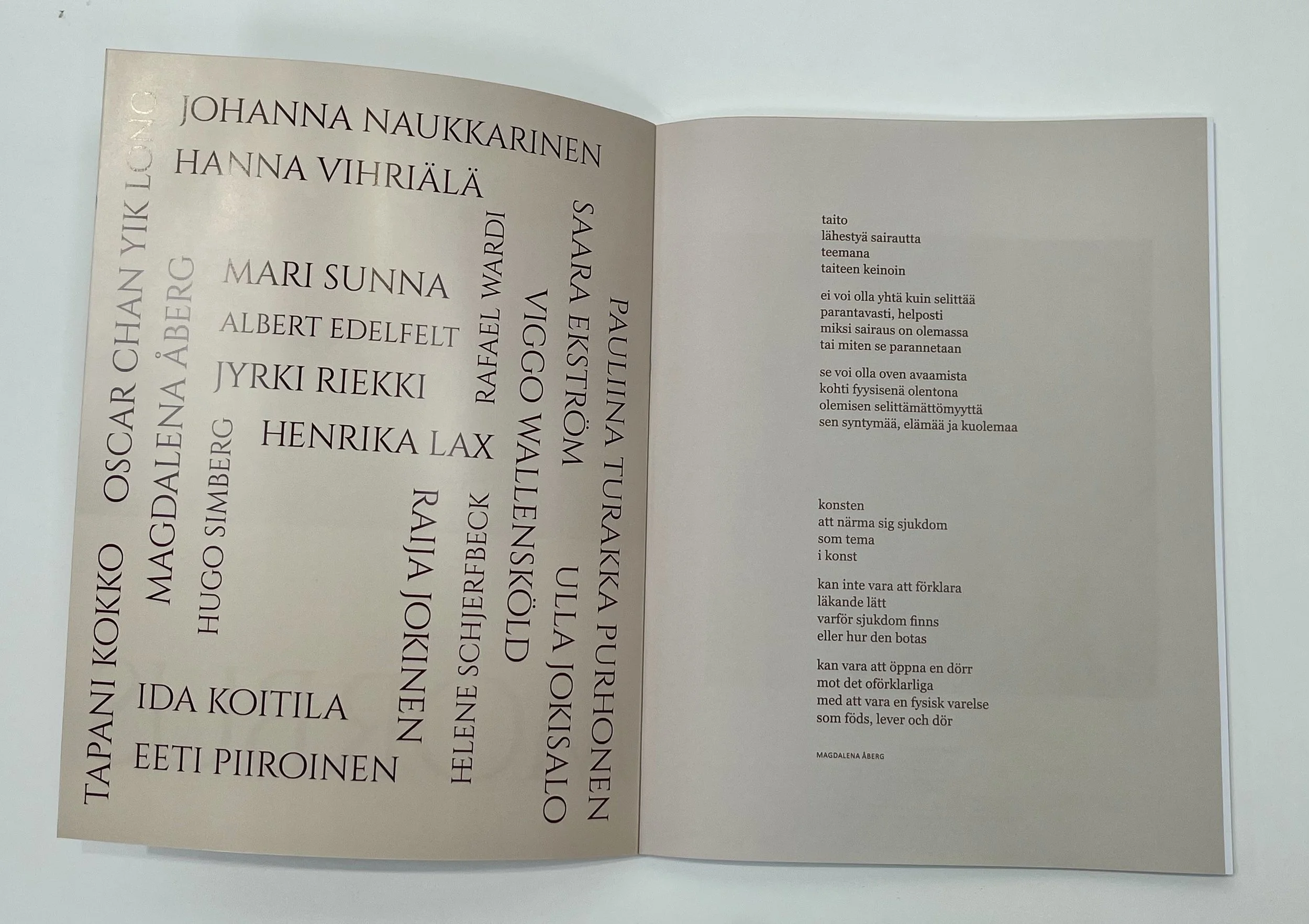 A group exhibition I was invited, by the private museum Villa Gyllenberg, to plan, curate and take part in. I was given the luxury task of choosing and inviting fourteen other artists to take part in the exhibition, together with some older works of art from collections, and I also wrote two essays for the publication.